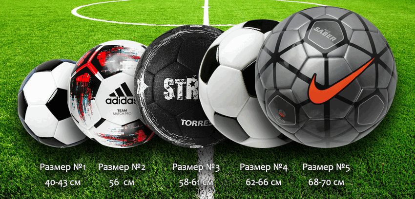 Сегодня принято разделять футбольные мячи по размерам и весу. Размерная сетка выглядит приблизительно следующим образом:
